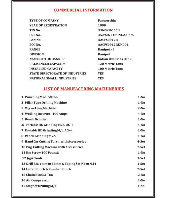 We are a Vellore based company in Tamil Nadu and we cover all areas of the India with a wide customer base